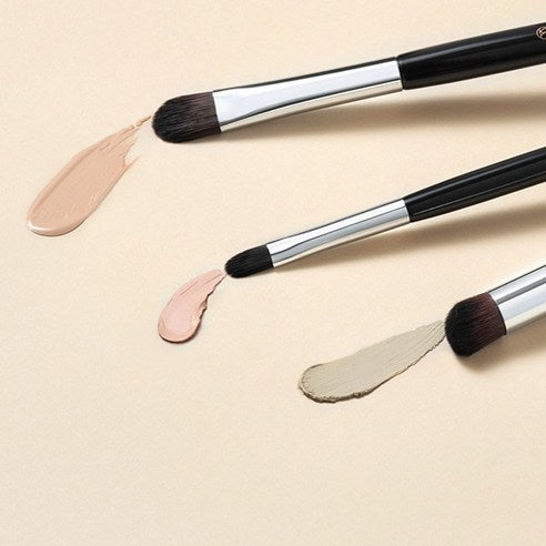 After thoroughly absorbing the product into the brush, lightly touch and cover the problem areas. For areas with prominent pores, gently tap to fill in the pores for a smoother coverage.